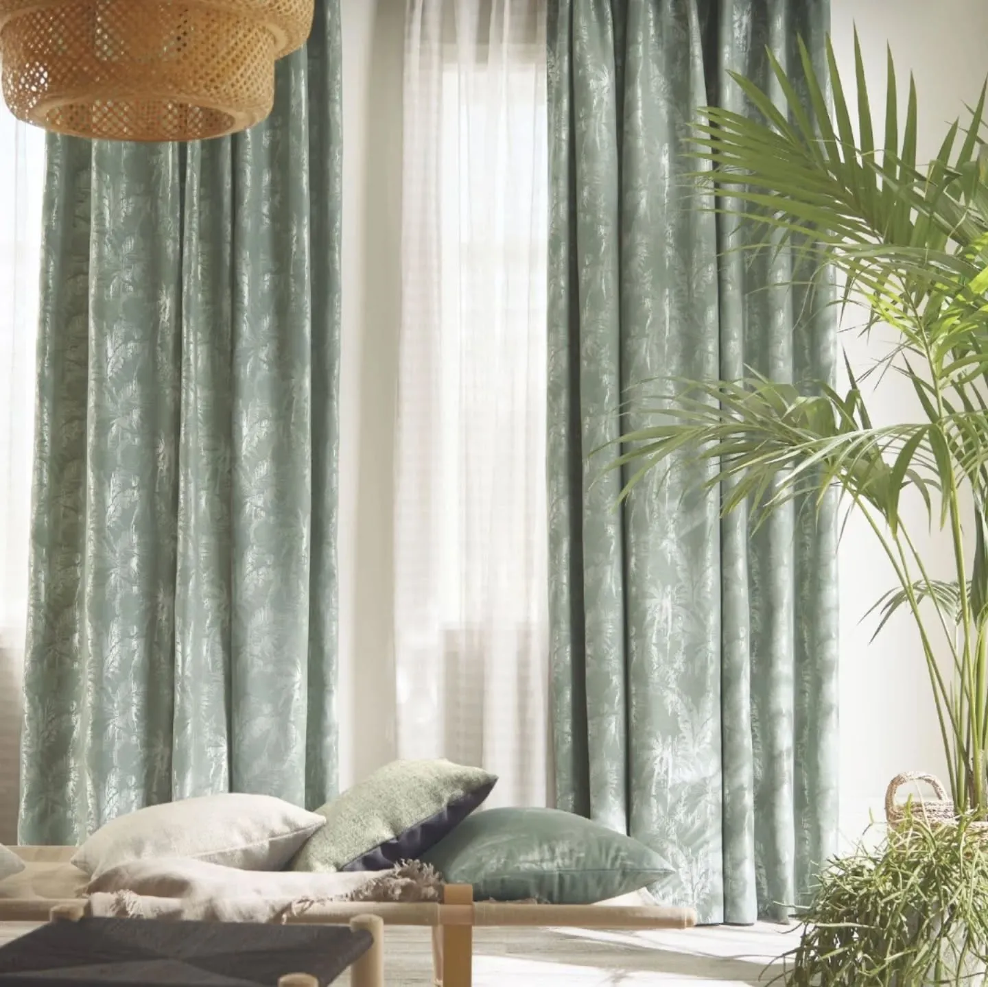 リビングをリフォームするなら、自然を感じるグリーンのカーテンがおすすめ。