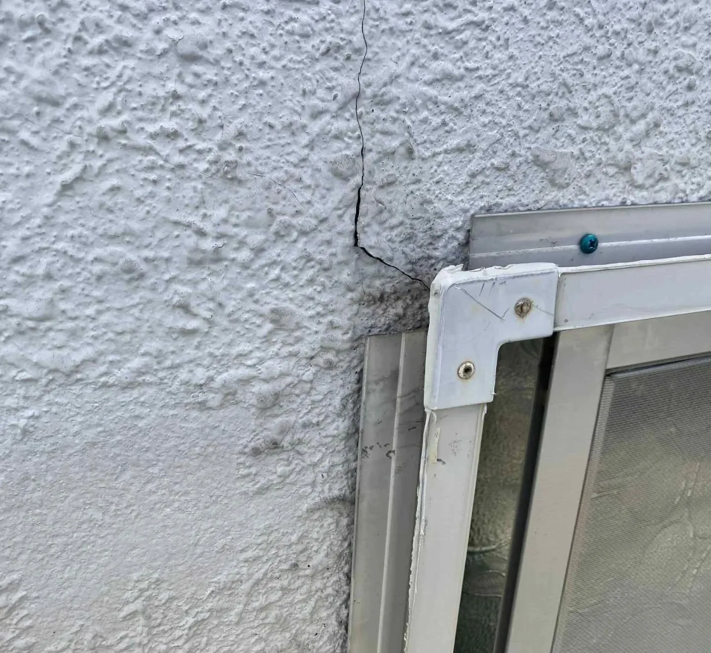 外壁材をめくってみたら、やっぱり下地のモルタルにクラックあり。