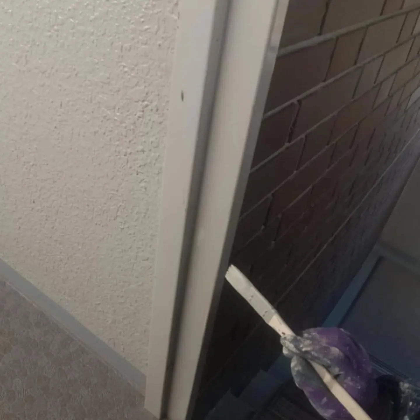 タイルとの取り合いなどの細部は、筆を使い、時間をかけて丁寧に。